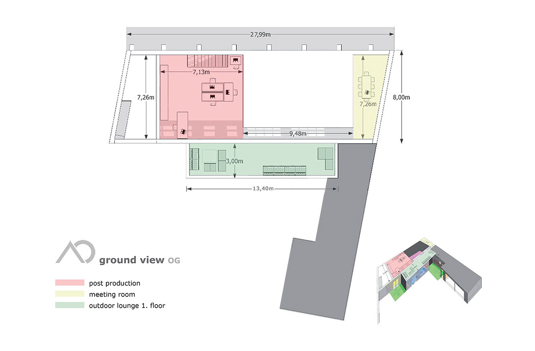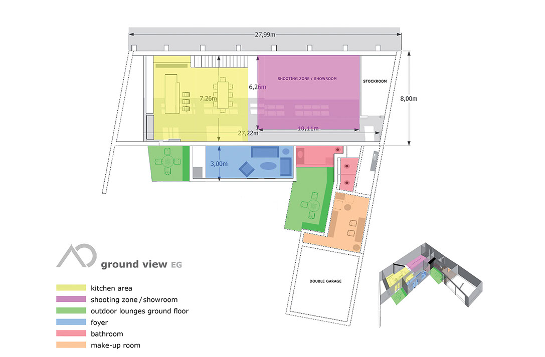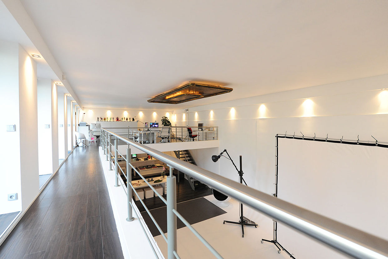 Das Gebäude ist in seinem Aufbau so konzipiert, das es sehr vielseitig einsetzbar ist. Buisness Meetings im Konferenz Raum, sind genauso möglich, wie auf der grünen Terrasse oder dem groß angelegten Ess- Tisch im unteren Bereich. Foto- Shootings sind dank der großen Hohlkehle kein Problem, welche man auch ohne weiteres für Film- Aufnahmen nutzen kann. Cinema 439 bietet auch weitere interessante Spots für kreative Aufnahmen. Unser Make Up Raum bietet einen geschützten Rückzugs Ort für Darsteller und Models, um sich optimal für die Aufnahmen vorzubereiten. Dort befinden sich genug Spiegel und Platz für ein perfektes Make Up und ein durchdachtes Fitting.